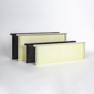 Each frame is pre-drawn so bees only complete the open cells. This shortens the time between harvests and helps the colony focus on filling the frame instead of rebuilding it.